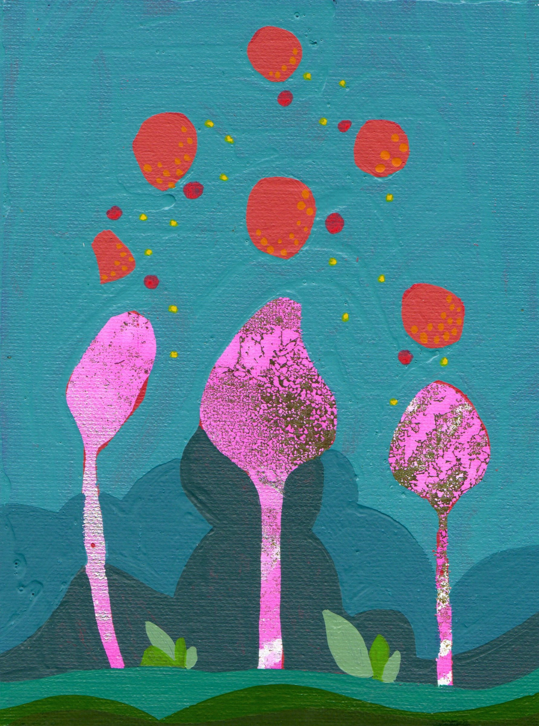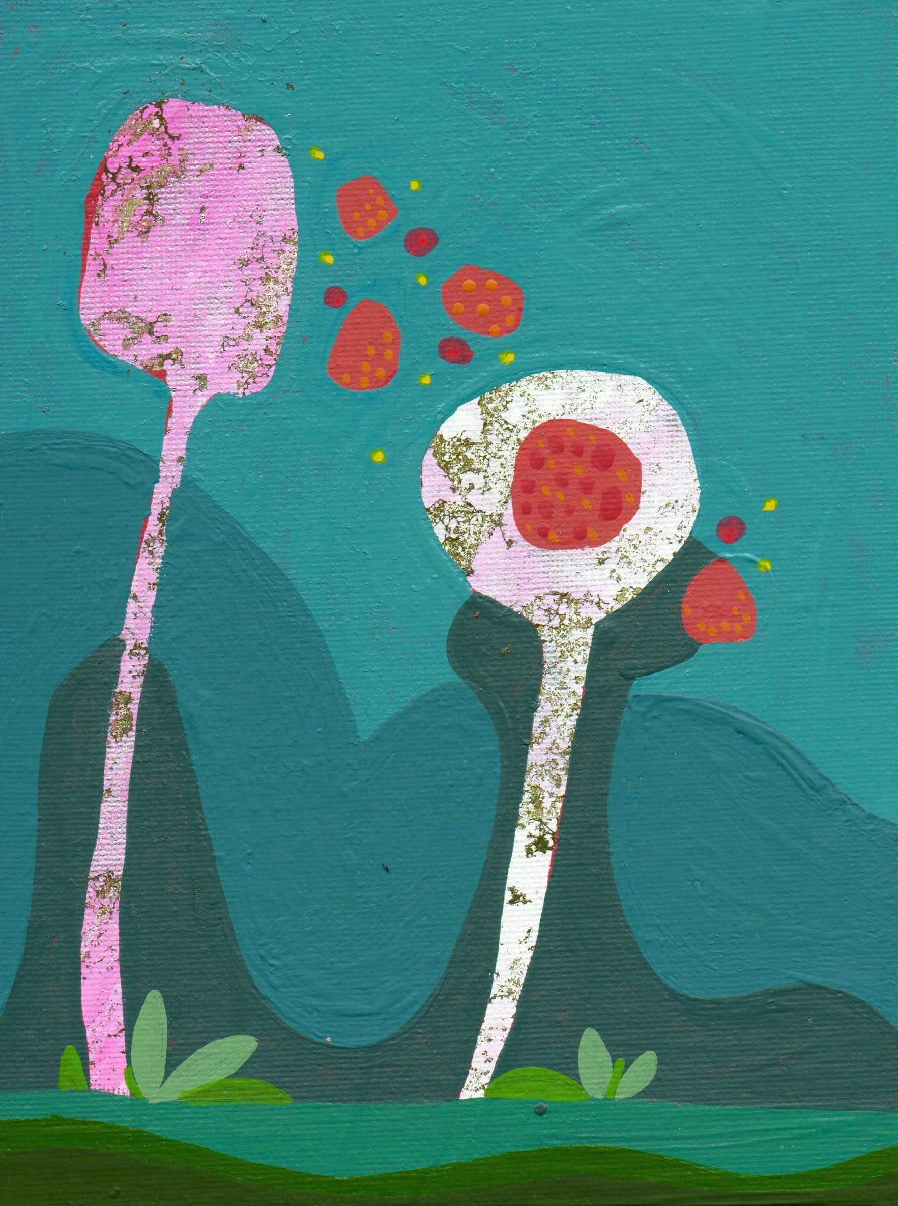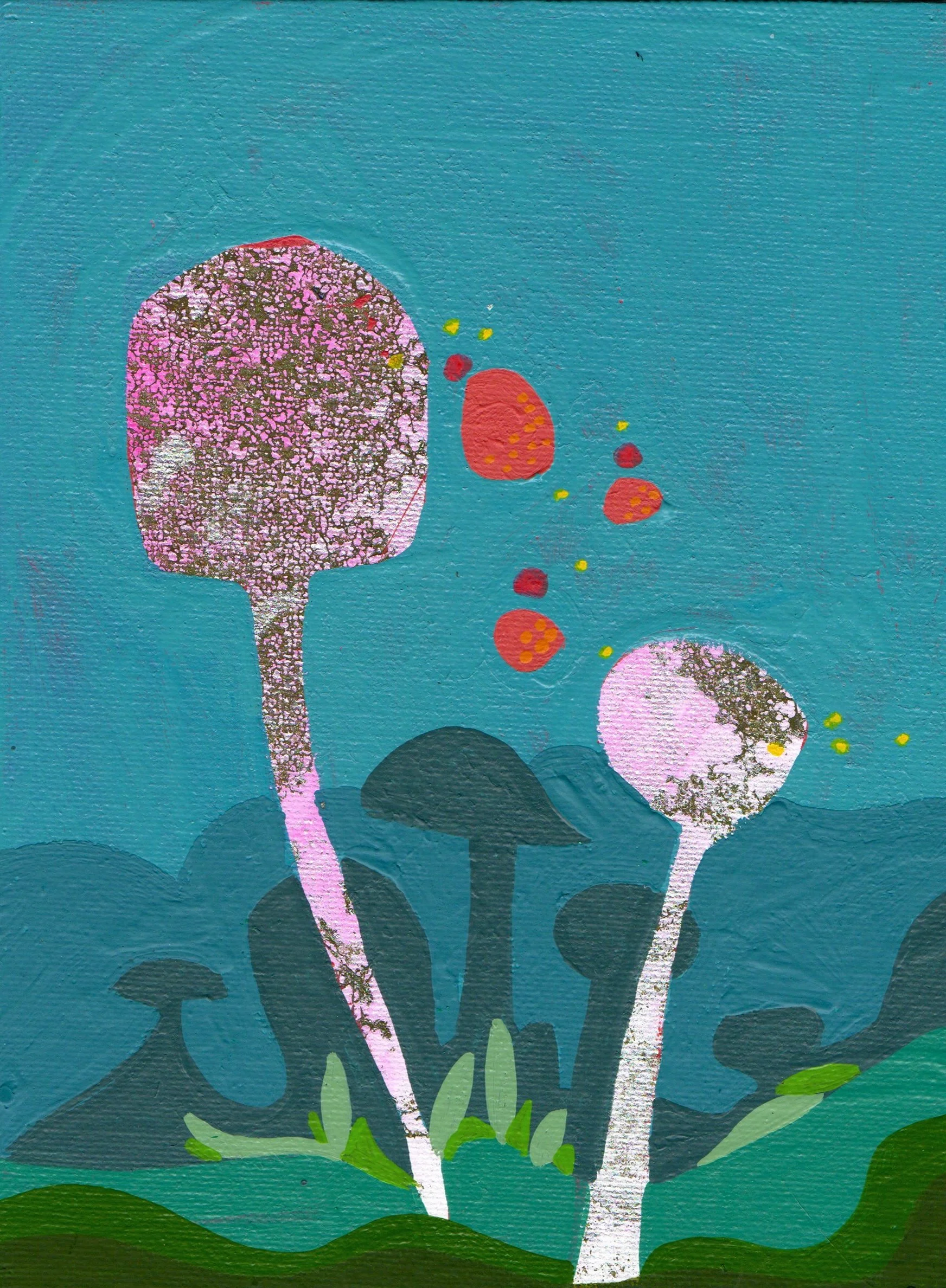 Mixed media on canvas panel. Each 5x7” made in 2024