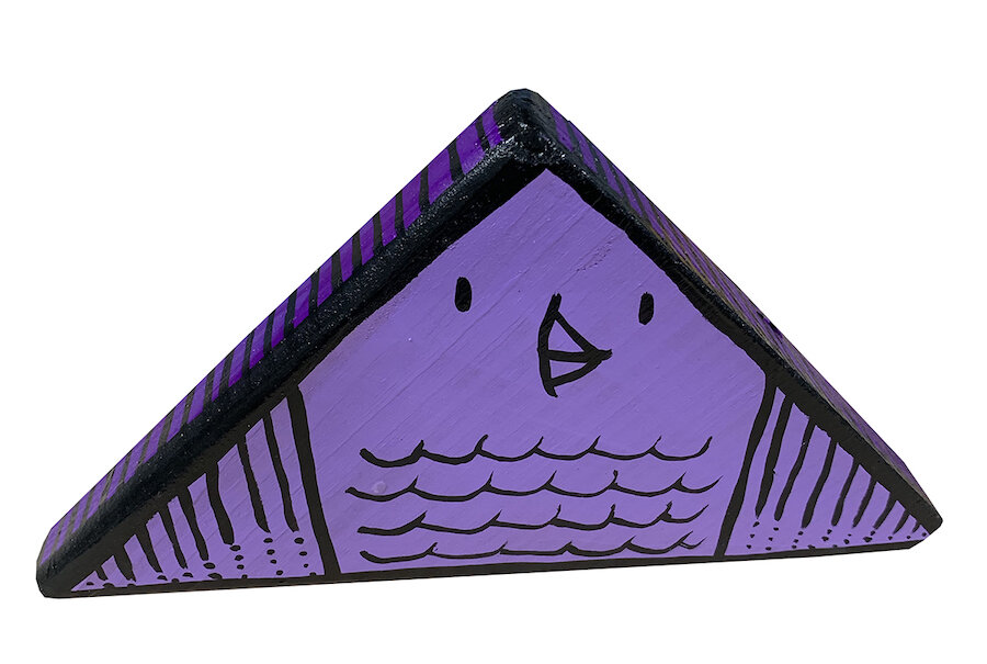Handpainted wooden animal figures made of reused wood pieces. This batch made in 2020 - present. Dimensions vary.